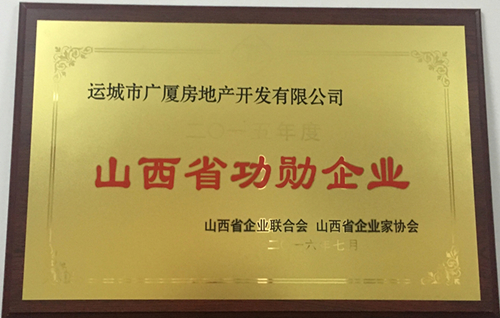 運城市廣廈房地產(chǎn)開發(fā)有限公司于2016年7月榮獲“2015年度山西省功勛企業(yè)”榮譽稱號